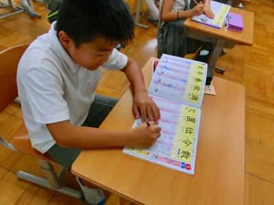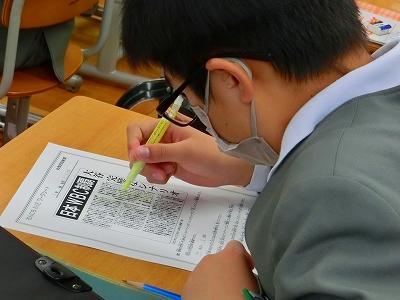 そのような活動の1つに「読みチャレ」という学習があります。朝学習の時間を活用して子ども達が読解力を身に付けるために行っている学習です。新しく着任された職員には、聞き慣れない「読みチャレ」という取り組みに戸惑うこともあり、今日の朝学習の時間を活用して、校内OJT「読みチャレ指南」を行いました。先生方は、6年1組の子ども達が集中して取り組む様子を見学しながら、取り組みの方法を理解していました。時間いっぱい学習に取り組むために、プリントが早く終わった子は、視写ノートに教材文を視写しています。決められた時間に、見通しを持って自分達で学習を進めている子ども達の様子は、見学していた先生方にもとても美しい姿として心に残ったようです。