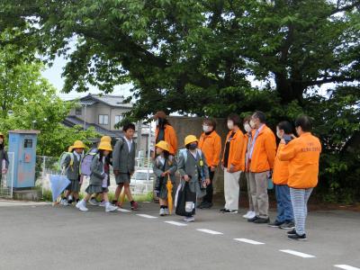 そのほかにも、先日は、児童委員の方々が挨拶運動に来てくださいました。校門の桜の木の下で10名以上の方々がずらっと並び、学校に来る子ども達1人1人に「おはようございます」「車来ているよ、気をつけて」と温かい声をかけてくださいました。子ども達もたくさんの声を掛けてもらい、朝から元気をいただきました。