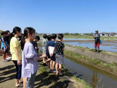 5年生は、田んぼの学習で、農家の方々に丁寧にご指導をしていただきました。学校の職員では指導できない分野ですので、本当に助かります。