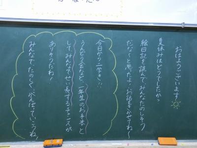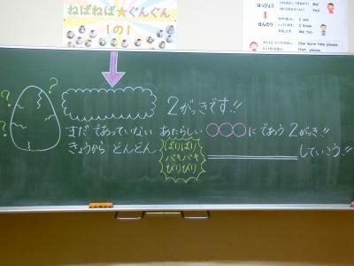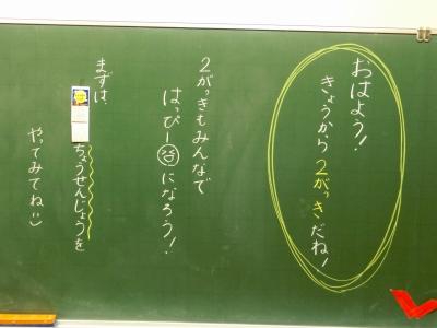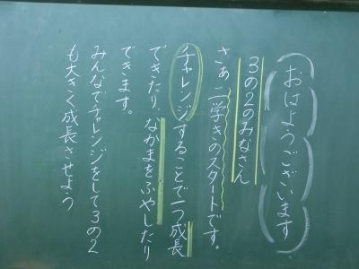 朝、教室に入ったとき、先生方のメッセージが書かれている黒板を目にした子ども達。きっと、「今年一年が楽しみだ」という気持ちを持ったのではと思います。