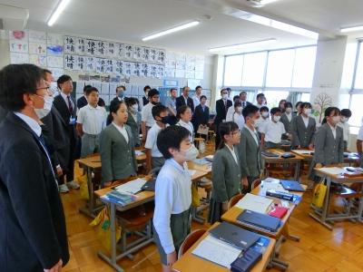 1時間目は始業式を行いました。熱中症予防のため、冷房の効いた教室でオンライン集会の形で行いました。