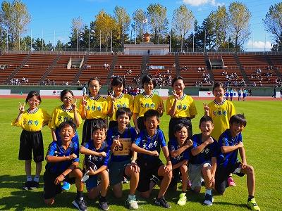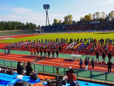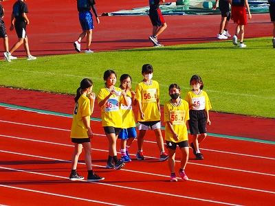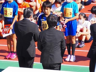 11月3日文化の日、秋晴れの中、西部緑地公園陸上競技場にて「第17回いしかわっ子駅伝交流大会」が開催されました。県下より男子59チーム、女子56チームがエントリーし、子ども達の思いをたすきにつないで走り抜きました。本校も男女とも参加しました。朝、フィールドで体慣らしをしたあといよいよ本番。スタートラインにたった1区の走者、たすきをつなぐ2区から5区の走者、そして、記録会に参加した走者、どの子も日頃の練習の成果を思う存分発揮することができました。また、6年の出山陽士さんが、3区を激走し、見事区間賞をいただきました。自分たちの実力を出し切れた子ども達の表情は、秋晴れの空のようにさわやかでした。