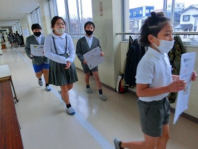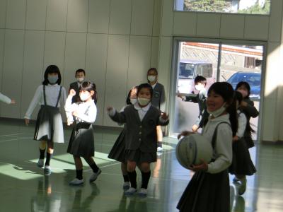 大根布小学校にたくさんの温かい気持ちを運んでくれるキラキラ郵便局員さんの笑顔もキラキラしていました。