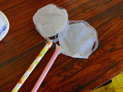 金魚すくいのポイ(金魚は食品トレーで作ってありました)