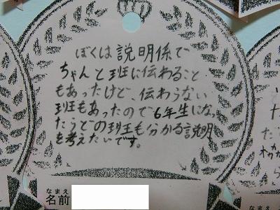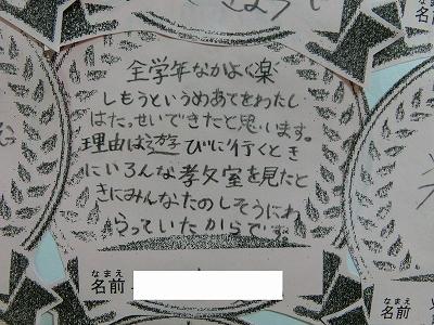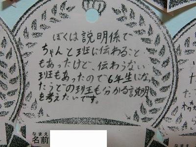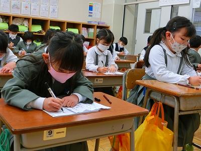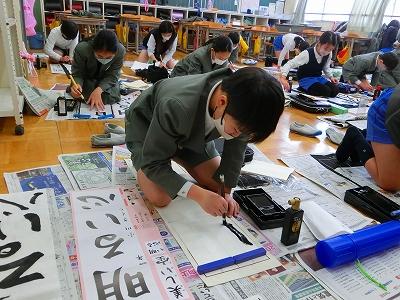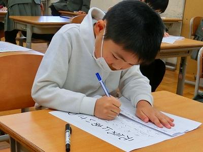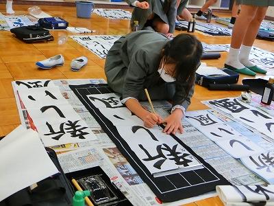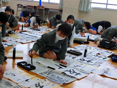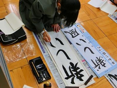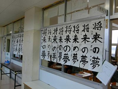 そして、書き初め大会も行われました。冬休みに練習してきた成果を発揮出来た子どもたちがたくさんいたようです。どの子も真剣な表情で、書写作品に向き合っていました。6年生のお題は「将来の夢」。6年生が、息をつめて丁寧に作品を仕上げる様子を見ていると、子ども達の持っている夢がきっと叶うような気がしてきました。