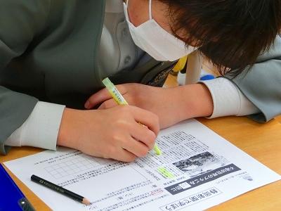 帯タイムの取組の1つに「読みチャレ」があります。新聞記事を題材にした質問に対して、読み取ったことを答えたり、自分なりに考えたことを作文したりする学習です。全学年で取り組んでいるのですが、今日は、全職員が、6年生の「読みチャレ」の様子を見学しました。自分自身の指導の積み重ねが、6年生になるとどんな力になるのかを実感する時間にもなりました。