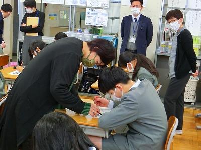 6年生は、先生の指示がなくても、問われていることに対するキーワードや自分の考えの根拠となる部分に蛍光マーカーで印をつけていました。6年生の担任が、どのように机間指導をしているのか、どのタイミングでヒントとなる言葉をかけるのかを全職員で見学しながら学習しました。