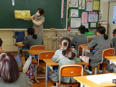 どの教室でも、真剣な表情で聞き入る子ども達の姿が見られました。読み聞かせが終わった後、ボランティアさんと少しお話ができたのですが、「大根布の子ども達は静かにおはなしを聞いてくれます」とお褒めの言葉をいただきました。