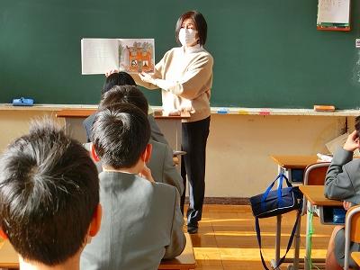 さて、今朝は、5つの学級で朝の読み聞かせがありました。読み聞かせボランティアの「がらがらどん」さんと、英語の読み聞かせの荒木さんの5名の方々が、それぞれの教室で絵本などを読んで下さいました。