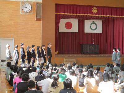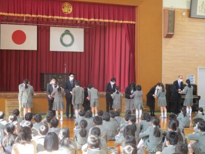 式の最後には、子ども達が、先生方との出逢いに感謝しながら校歌を心を込めて歌いあげました。