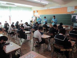 静かに姿勢よく先生の話を聴く姿、ノートやワークシートに真剣に自分の考えを書く姿、だれとでも協力して学習する姿など、先輩である中学生が学習に臨む姿はとても立派でした。