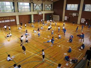 2限後の長休みは、使用割を決めて体育館も使って練習しています。