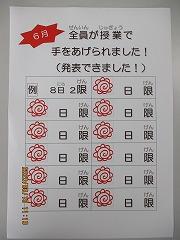 6月9日から、「全員が授業に参加しよう」という取組をしていました。とにかく、自分の考えや思いを意思表示することを目指し、カードに記録しました。19日(金)時点で、7クラスが1枚目のカードを完了し、校内の掲示板で紹介されています。