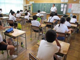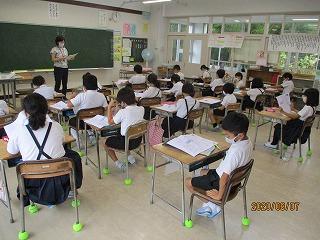 <夏休みの宿題、生活のきまりを確認する5年生>