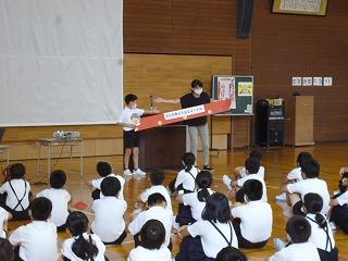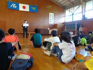 子どもたちは、津幡町役場の人たちや警察の人の話を集中して聞いていました。