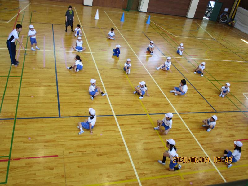 また、今週は気温が高い日もあり、エアコンの試運転も行いました。マスクを着けたまま夢中になって遊ぶと熱中症の心配もあり、一時的にあごのところまでマスクを外して、呼吸を整える大切さも指導しました。