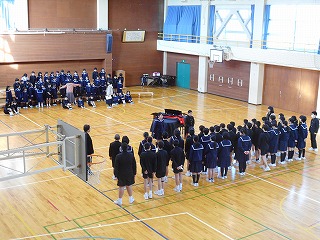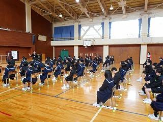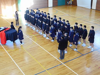 その後、5年生と6年生で卒業式練習を行いました。今日が最初で最後の卒業式練習です。集中して練習していました。