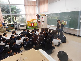 朝学習の時間に1~4年生のみなさんは、図書ボランティアの方から読み聞かせをしていただきました。