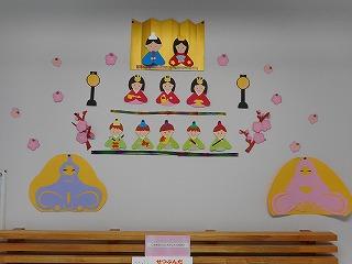 色紙を貼り合わせて、お内裏様、お雛様、三人官女、五人囃子を精巧に作ってあります。