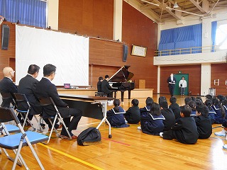 5限目に島製作所様より寄贈していただいたピアノの披露目会がありました。