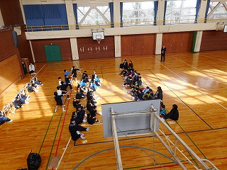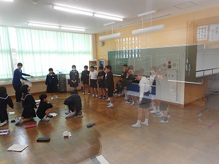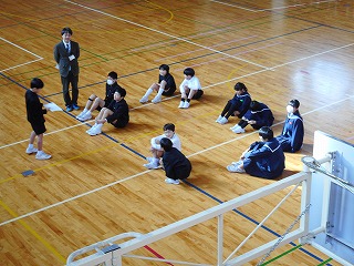 体育委員会の皆さんは、体育館でイベントの練習をしていました。