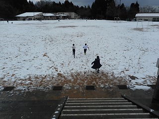 久しぶりの雪です。子どもたちは雪が大好きです。十分には積もっていなくても、運動場に出て、雪合戦や雪だるまづくりを楽しんでいました。
