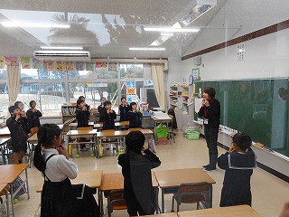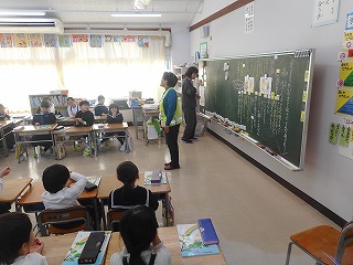 2年生のみなさんが道徳の時間に、見守り隊の方を招いて学習しました。