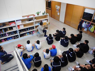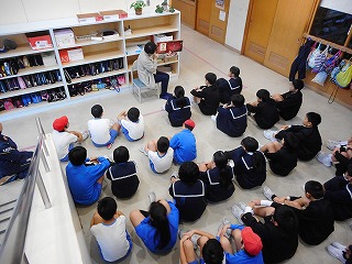 朝学習の時間、図書ボランティアの皆さんに読み聞かせをしていただきました。