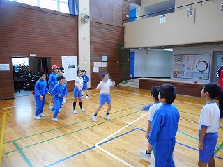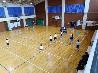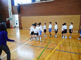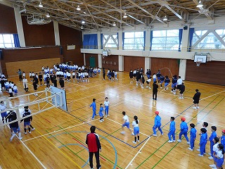 今日から、大縄のなわとびチャレンジが始まりました。今日体育館で取り組んだのは、各学年の1組です。声を掛け合って取り組んでいました。