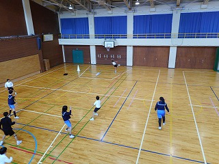 6年生は、タブレット端末を使って、跳んでいる様子を撮影し、自分の跳び方を確認していました。どんな風に跳んでいるかは自分ではわかりません。タブレットを有効に活用していました。