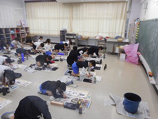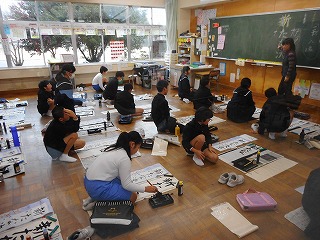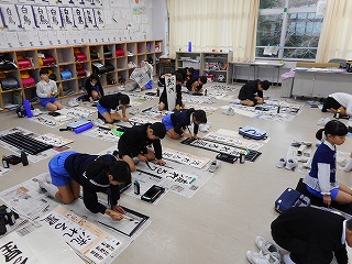 3,4限目は書初めをしました。冬休みの宿題に書初めの練習があったので、上手に書けて満足していました。