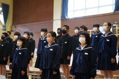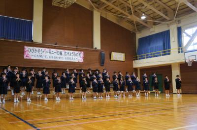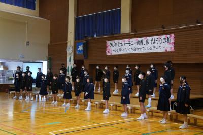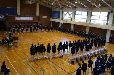 全校合唱「ふたつの海」 学校全体に歌声が響き渡りました。