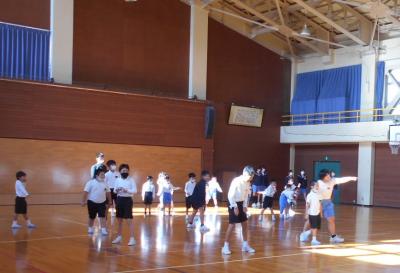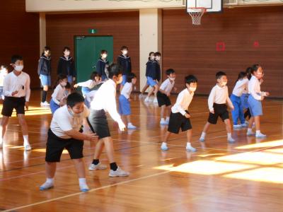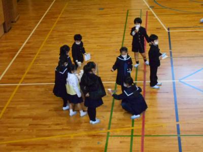 1年生と6年生の仲良し活動が行われ、「こおり鬼」と「だるまさんがころんだ」を楽しみました。