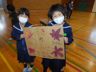 1年生が店員さんの「あきのおみせやさん」がオープンしました。