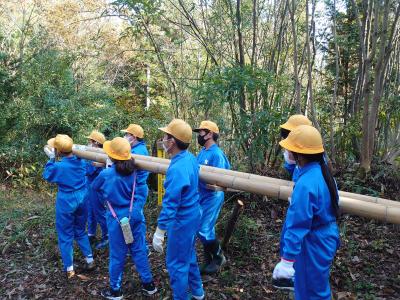 河北郡林業研究会のみなさんのご協力のもと、1学期から始動していたプロジェクトが形になり実現しました。