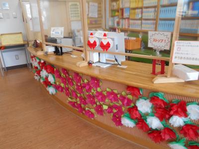 図書室の装飾が12月バージョンになりました。