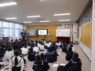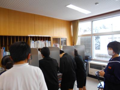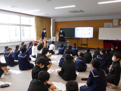 2022年1月21日 15時10分選挙管理委員会の方にお越しいただき、6年生が模擬投票を行いました。
