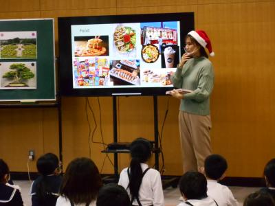 4年生が道徳の授業でいろんな国の文化の違いについて学習し、ALTのアレックス先生にアメリカの文化についてお聞きしました。