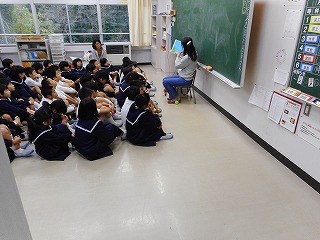 どの学年も静かに読み聞かせを聞いていました。