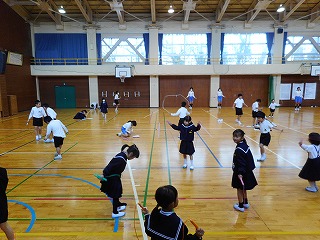 その寒さに負けず、なわとび運動に取り組んでいました。