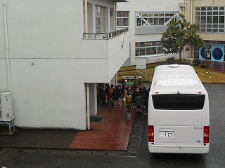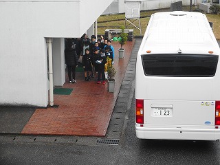画像は、収蔵庫行きのバスに乗るときの様子です。