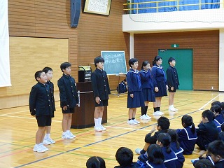 前半の児童集会では、委員会の委員長、学級の学級代表の任命式がありました。全校の前で紹介されることにより、頑張ろうとする気持ちをもっていました。