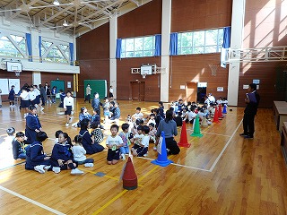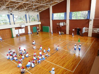 5限目に2年生は体育館でマラソンの練習をしていました。