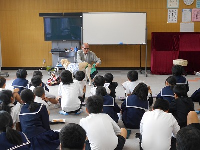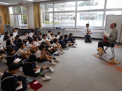 4年生は盲導犬と一緒に生活をしている佃田さんに盲導犬について詳しく教えていただきました。実際に盲導犬に触れ合ってみて、とても勉強になりました。