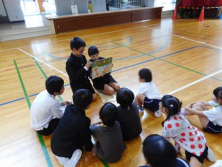 朝学習の時間に、図書ボランティアの皆さんに読み聞かせをしていただきました。