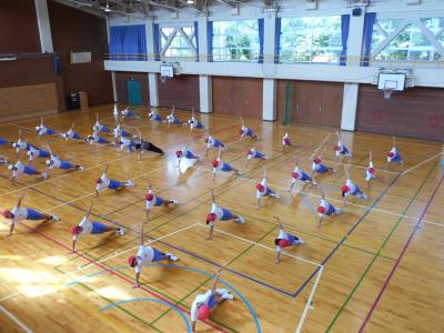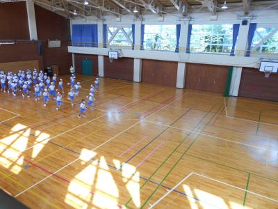 今日の体育館からは常に大きなかけ声や音楽などが聞こえてきて、入れ替わり運動会の練習が行われていました。