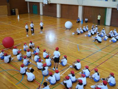 今日は5年生・6年生合同で「大玉運び」の練習が行われました。