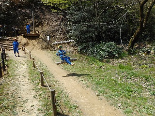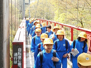 途中、つり橋を渡りました。揺れてすこしこわかったようです。