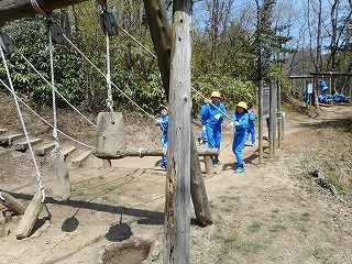 高学年は遠足で森林公園に行き、フィールドアスレチックをしました。5,6年生混合の委員会のメンバーでまわりました。協力しながら楽しめました。