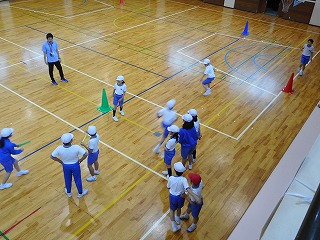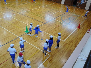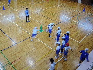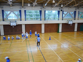 5年生が体育の時間に40mリレーに取り組んでいました。